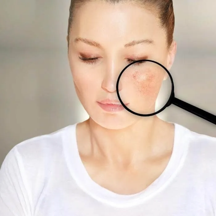 Skin redness is a chronic condition that can develop with or without acne-like pimples and can occur for unexplained reasons. Unwanted redness of the skin might make you self-conscious or feel the need for makeup to cover up the unbalanced tone. Excessive makeup can clog the pores, causing more breakouts and redness. Rosacea is a skin disorder that can sometimes produce excessive and embarrassing skin redness, especially around the face and neck. Rosacea does not go away on its own. If left untreated, it will intensify with time. It is a chronic illness that affects people of all races. In contrast to acne, over-the-counter medications frequently do not treat rosacea and may irritate the skin, worsening the condition.